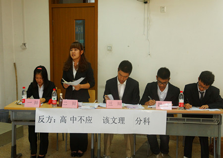 由于场地和人员安排的原因,本次辩论赛共分为前后两场。大一新生八个班参加了本次比赛,比赛顺序通过抽签决定,最终比赛顺序为122110001班VS122110002班、122110003班VS122110007班、122110006班VS122110008班、122110004班VS122110005班。比赛论题分别为“高中生是否应该文理分科”、“中员工是否应该穿校服”、“限娱令能否提高娱乐节目的质量”、“大学宿舍是否应该断网断电”。