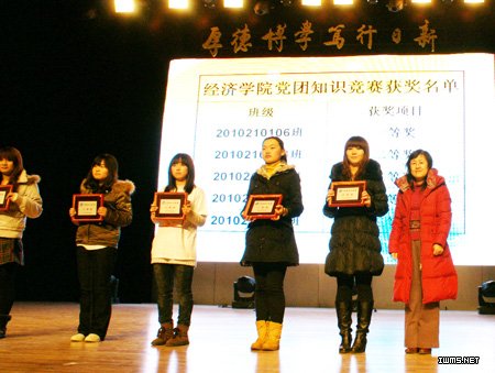 同前两届风采大赛暨年度表彰晚会一样,本届晚会在比赛之余对过去一年取得奖学金的同学们进行了表彰,同时,也表彰了在新生系列活动中获奖的班级和个人。主办方对获得2009-2010年度国家奖学金、国家励志奖学金、校级、院系级三好员工和各类单项奖的员工进行了风采展示,希望2010级新生们可以通过这样的展示找到自己努力的方向,向着这些受到表彰的学长们看齐,充实地度过美好的老员工活。公司党总支书记赵娴、副经理刘崇献等老师为获奖的班级和员工个人颁发了证书和奖牌。