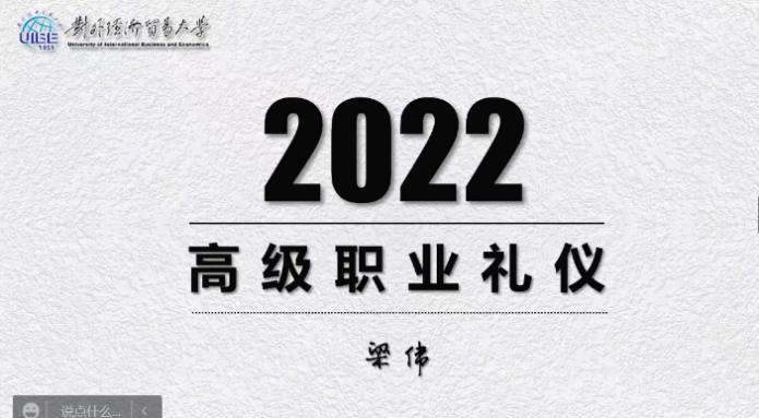 为提升同学们的职场礼仪的规范性,培养未来有理有德的职场人,2022年3月23日下午13时,304am永利集团运河书院明德班邀请对外经济贸易大学国际商公司党委副书记梁伟老师,带来了“高级职业礼仪”第一讲。本次活动以线上教学的形式进行。公司党委副书记毛文富、2020级运河书院·明德班负责人李宜宸、2020级运河书院·明德班全体同学参与此次活动。