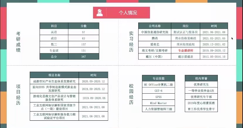 其次,王玲玉从三个方面为同学们进行分享,分别是为什么要考研,现阶段可以做什么准备以及正式备考建议。从前期准备到正式备考,同学们对这个过程有了更全面的认识,对备考时如何更好的克服各种困难有很大的帮助。