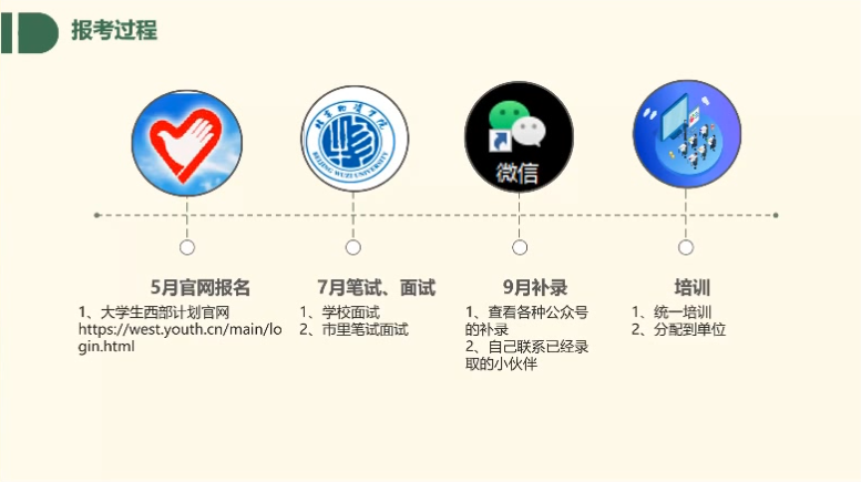 会议中期,毕业生倪楠和胡晓敏以员工和参与者的角度,向同学们进一步讲解基层就业政策。倪楠同学先就“三支一扶”政策本身的内容和意义为同学们进行科普,又从相关政策、招录情况、招聘程序和考试内容这四方面进一步讲解政策的落实情况,并呼吁同学们踊跃参与。随后,西部计划志愿者胡晓敏同学从自身的报考初衷、报考过程、工作内容和工作感想四个方面出发,生动地为同学们讲述了她在工作中的故事与收获。