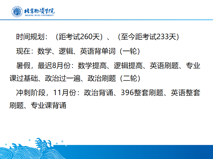 讲座最后,黄珊珊老师进行了总结。首先,“凡事预则立,不预则废”,要提前做好充分的准备;其次,熟能生巧,通过不断的练习达到巩固知识的目的;再次,心态很重要,坚定地向目标前进,行胜于言;最后,坦然面对一切结果,无论成功与否。