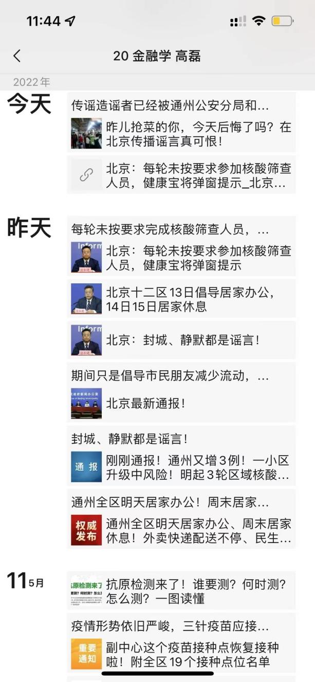 例如5月12日在我市居民中口口相传的谣言称未来三天要静默,需要抢菜,我便及时的转发当日疫情发布会上关于此谣言辟谣的有关推送,尽我所能告知认识我的人这一谣言的虚假性。让大家能够安心迎接这新一轮的核酸集采。后来我也转发了关于对造谣者的刑事拘留处罚的处理结果,也是希望我所认识的居民里可以擦亮双眼并且杜绝散播谣言。