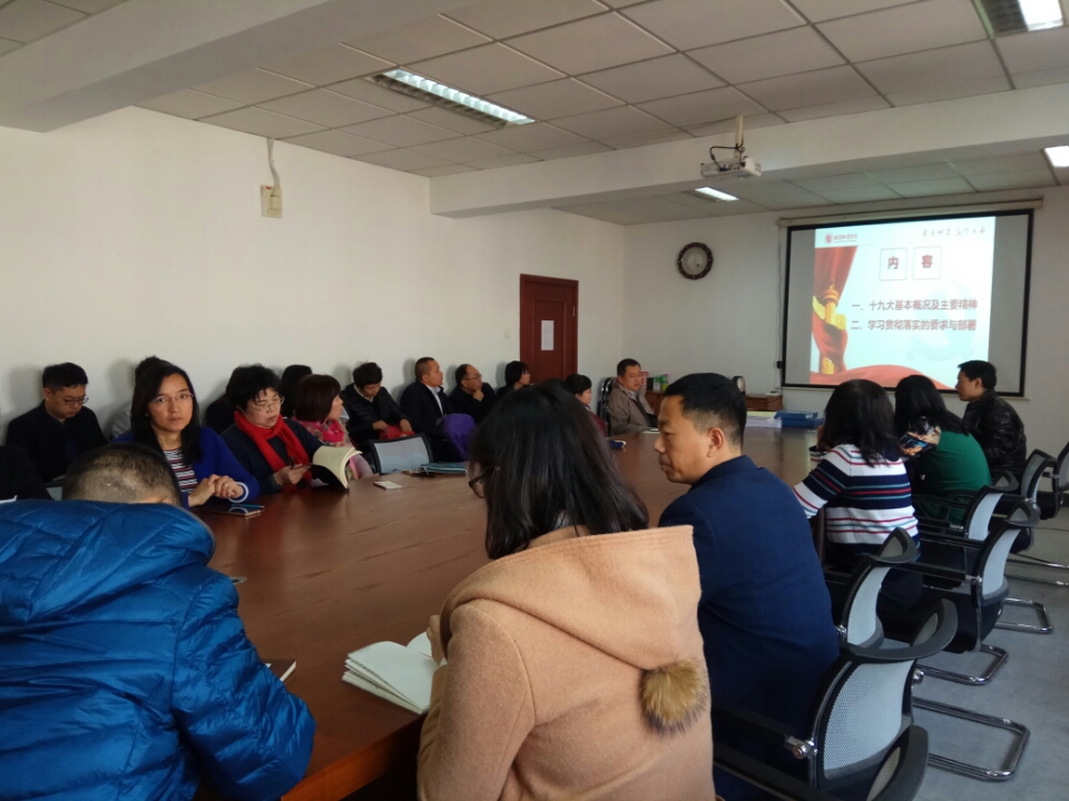 胡伟书记详细传达了中共中央、北京市委、北京教育工委、市教委和公司党委对学习贯彻落实十九大精神的要求与部署,并对学院如何贯彻落实作出了安排,要求全院以党支部为单位,组织全体党员和师生,认认真真学、原原本本学,在学通弄懂的基础上,开展专题研讨,结合自身学习工作实际,抓好贯彻落实。公司党委也将组织一系列学习宣讲活动,讲学习、宣传、贯彻落实十九大精神和推进学院工作有机结合起来。