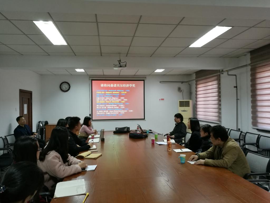 李仁贵主任以诺贝尔经济学奖的预测分析与追踪研究工作为切入点,系统阐述了诺贝尔经济学奖的预测分析过程,其研究成果正逐步被验证。李主任指出,诺贝尔经济学奖奖励的是特定成就而非特殊人物,并且评选诺贝尔经济学奖获得者所依据的研究成果往往是几十年前所作出的,尤其是和其所做的博士论文密切有关,这为青年学者从事科学研究带来极大激励。