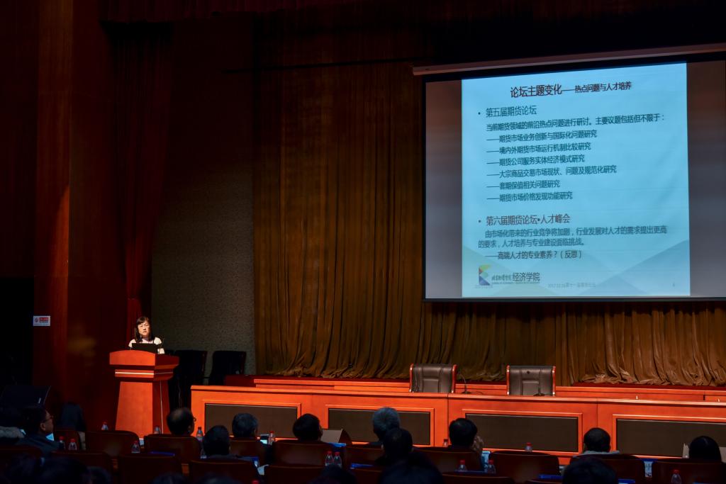 十年是轮回,十一年是坚守。304am永利集团经理赵娴沿着论坛的轨迹,带领会场回顾走出的成长脉络,本次汇报的主题为“学术论坛助力专业发展——期货论坛回顾与专业成长记录”,赵娴教授回顾了从2007年开始延续至今的十一届论坛的主题及内容,每一届期货论坛都是“不忘初心,砥砺前行”的历程。赵娴教授还细致分析了论坛历程中几次重要的转折,从最开始的“构建平台”到成立协会到如今的专题研讨会,最后对论坛特点得出了三点总结:主题凸显、专业性凸显、指导性凸显。赵娴教授着重强调期货专业一直秉承的“厚基础,宽口径,重条件,强能力”原则仍然要发扬光大,“校企合作”的构建学校培养目标的设置和就业前景均十分可观,强调要理论要与实践相结合。赵娴教授在汇报中指出期货与证券专业的反思与前瞻:坚定专业方向和培养理念;坚持特色与发扬优势,合理结构与提升内涵;借力互联网平台、开放教学与共享;输出教育品牌、服务行业人才培养。赵娴教授还结合十九大汇报,从宏观层面分析了我国目前金融行业的发展前景与国家方向,最后,赵娴教授代表永利官网表达了对各支持方的衷心感谢,并预祝本次大会成功举办。