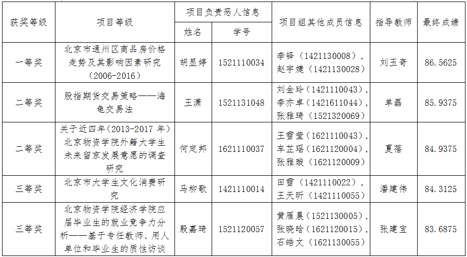 2016-2017学年304am永利集团“大创”竞赛校级优秀成果项目一览