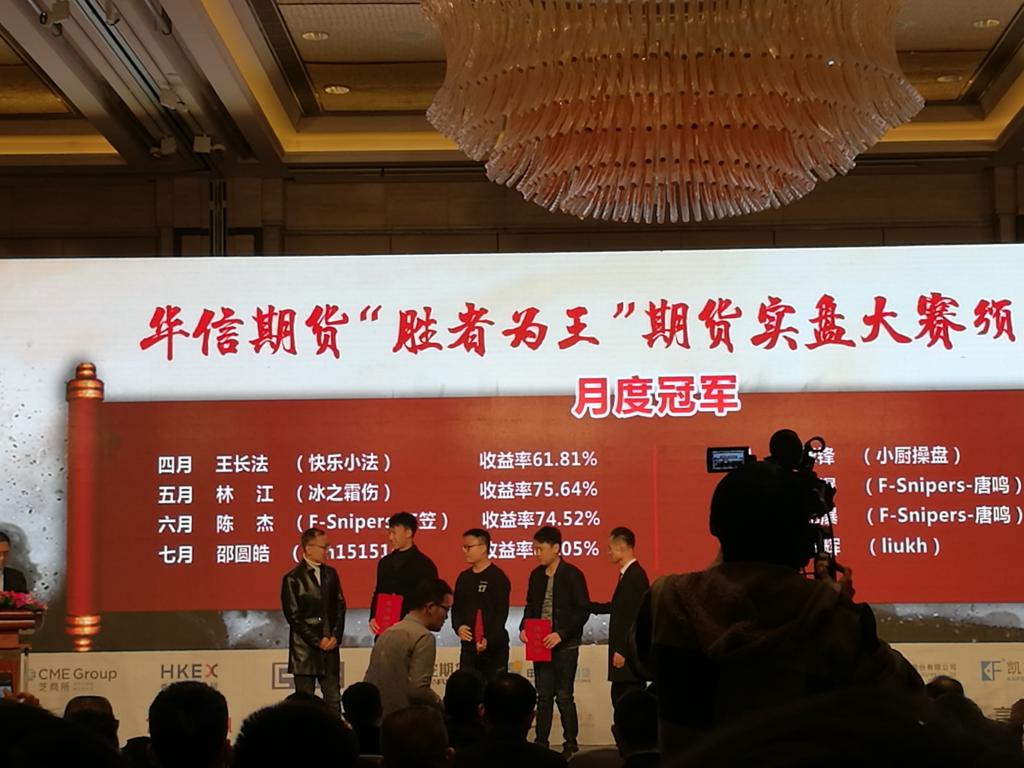 主论坛下午场以交易之家CRO张崇军题为“计划你的交易,交易你的计划”的主题演讲作为开端。随后,2017年全国期货实盘大赛基金组冠军乐凤杰就“人性的博弈,技术的考验”为题,结合自身交易经历做了精彩分享。交易之家梦工场联合签约仪式也在本次会议中顺利完成。“永安鲲鹏”私募成长计划、凯丰种子基金合作计划、国贸期货投顾人才培养计划以及多个实战交易团队参与本次签约。大会还举行了华信期货“胜者为王”期货实盘大赛颁奖典礼,及第六届“紫荆花杯”全球金融衍生品超级赛颁奖典礼。